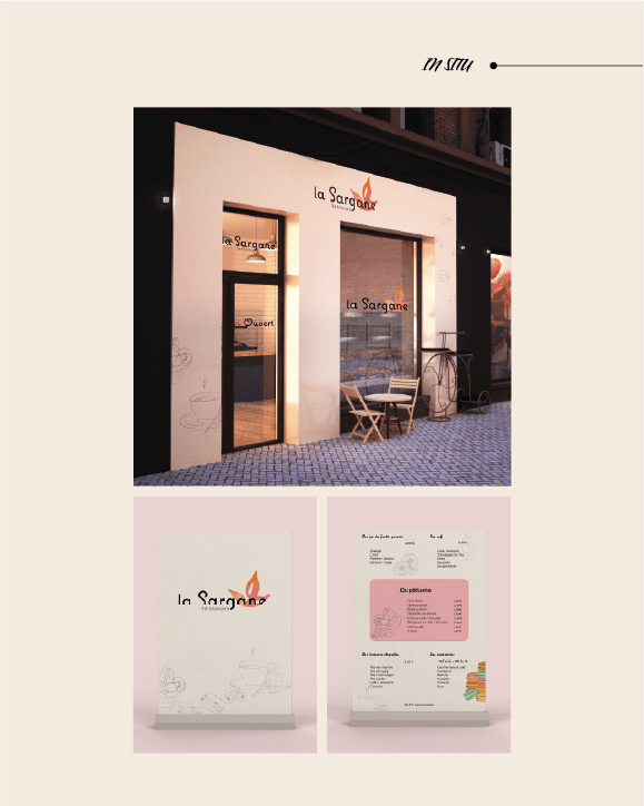 « La Sargane » est une pâtisserie à venir à Lyon, cherchant à se démarquer avec une identité visuelle unique avant son ouverture. J’ai aimé concevoir le logotype et le menu de l’établissement pour refléter l’esprit chaleureux et familial de ce futur salon de thé.